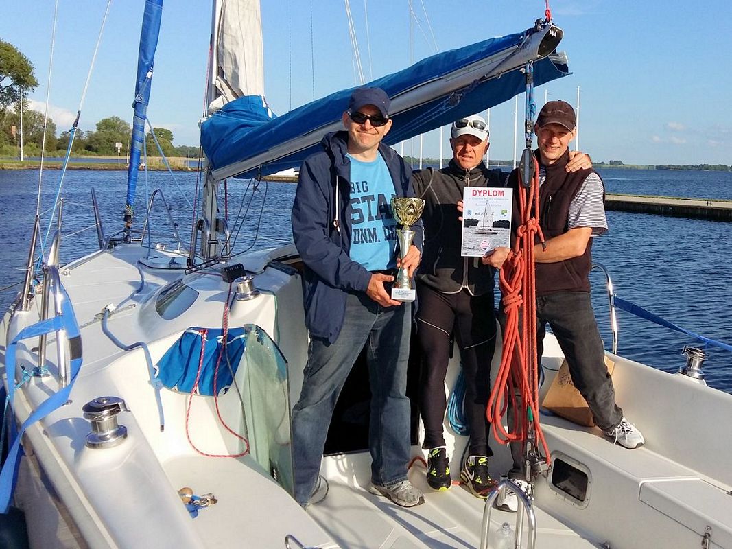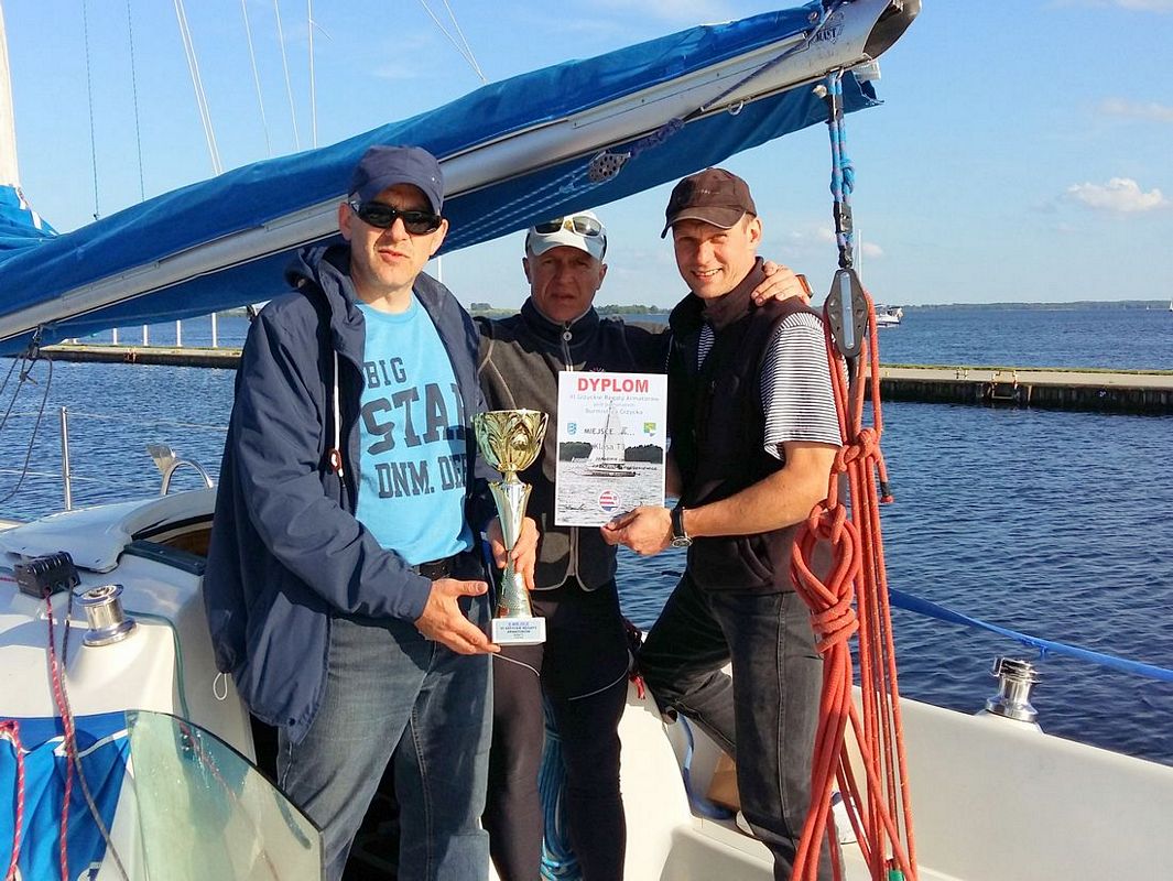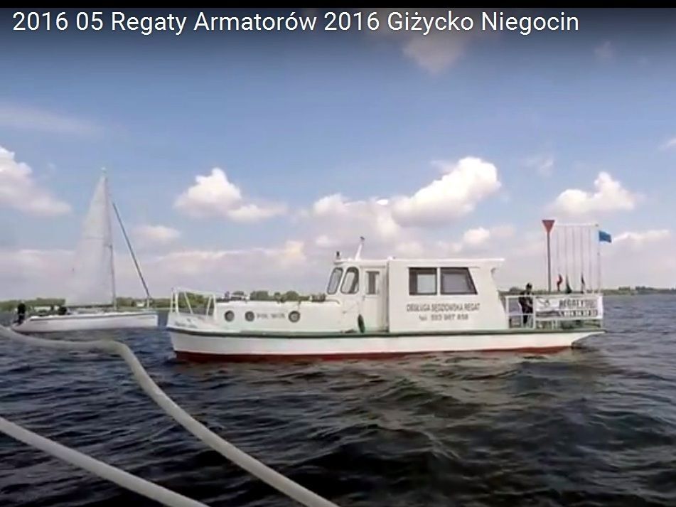 21.05.2016 odbyły się na jez.Niegocin VI Giżyckie Regaty Armatorów. W regatach wystartowaliśmy tak jak w roku poprzednim na Świetliku (Twister 800n) przygotowanym nie do regat ale do czarteru. Jak klasa turystyczna to jacht też turystyczny.Jako zwycięzcy z roku ubiegłego nie mieliśmy szans na zwycięstwo, bo nie wiemy jak, ale w T3 znalazł się Huzar 851 – jacht typowo regatowy. Pierwsze dwa biegi popłynęłyśmy nieźle zajmując pierwsze miejsce za Huzarem. W trzecim biegu spóźniliśmy się nieco ze startem, a do tego powiało mocniej czego Twistery specjalnie nie lubią. Na dolnej boi jeszcze zostaliśmy zablokowani przez Pana Sternika w marynarskiej czapce i po biegu. Trudno jeden bieg ma być odrzucony. Startujemy do decydującej rozgrywki, start dobry, ale na silnym wietrze Świetlik traci pozycje, niestety nie obronimy drugiego miejsca w regatach…? Nie poddajemy się, zamiast gonić, atakujemy na pełnym jesteśmy szybsi i na dolnej boi meldujemy się na drugim tzn. „pierwszym za...wiadomo kim”. Krótka halsówka na metę gdzie chwilę później łapiemy się w kadr kamery „Anioła”, który fetuje zwycięstwo w klasie T2, Świetlik w tym biegu był jednak szybszy… .