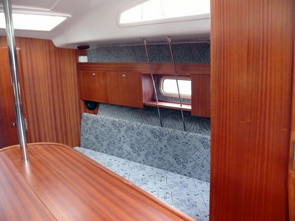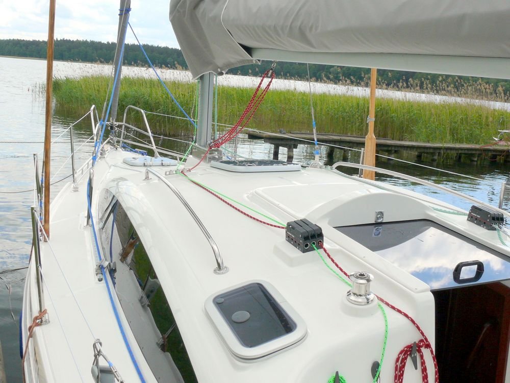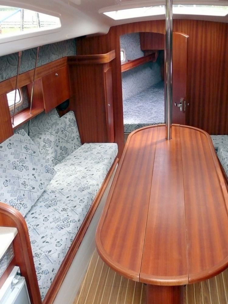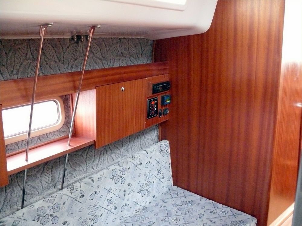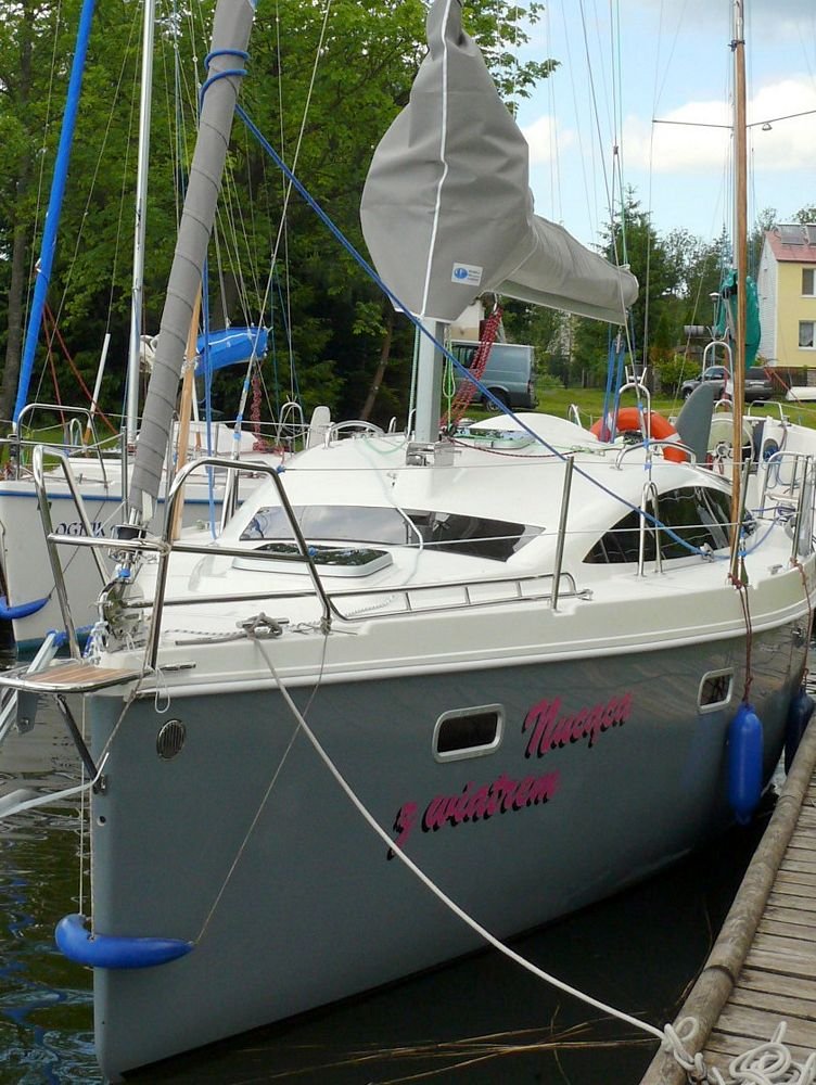 Łatwy w prowadzeniu, bezpieczny, wyposażony w telewizor z DVD (DVB-T), ster strumeniowy, Lazy Jack, Rolfok i oczywiście patent do kładzenia masztu. Kambuz wyposażony w lodówkę, umywalkę, dwupalnikową kuchenkę, ujęcie pitnej i zaburtowej wody zasilanej pompą ciśnieniową, dodatkowo radio, stolik w kokpicie, WC chemiczne, oraz bezpieczne ogrzewanie.