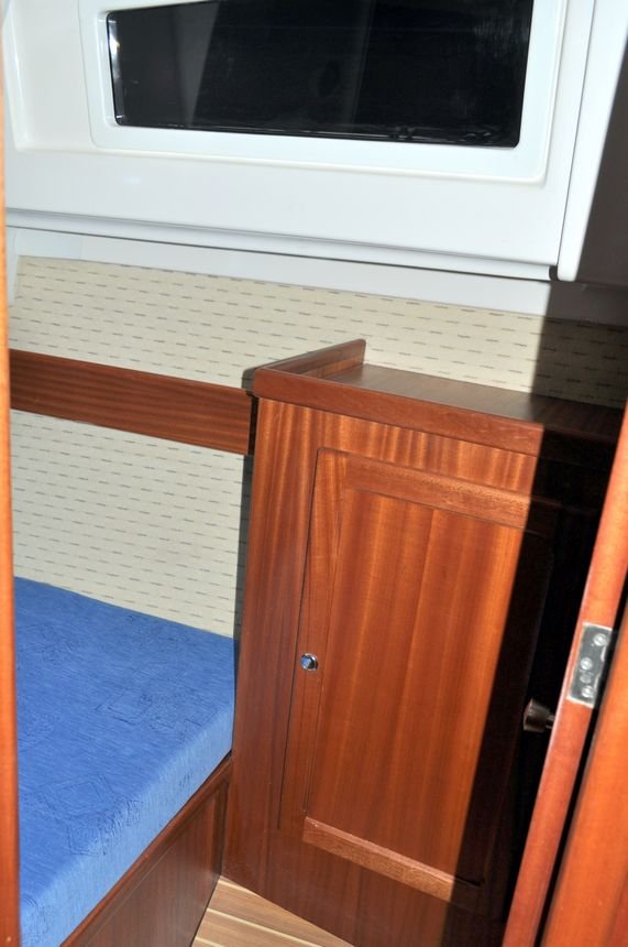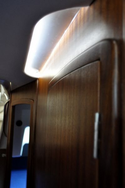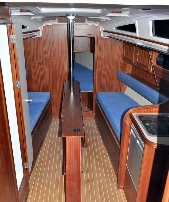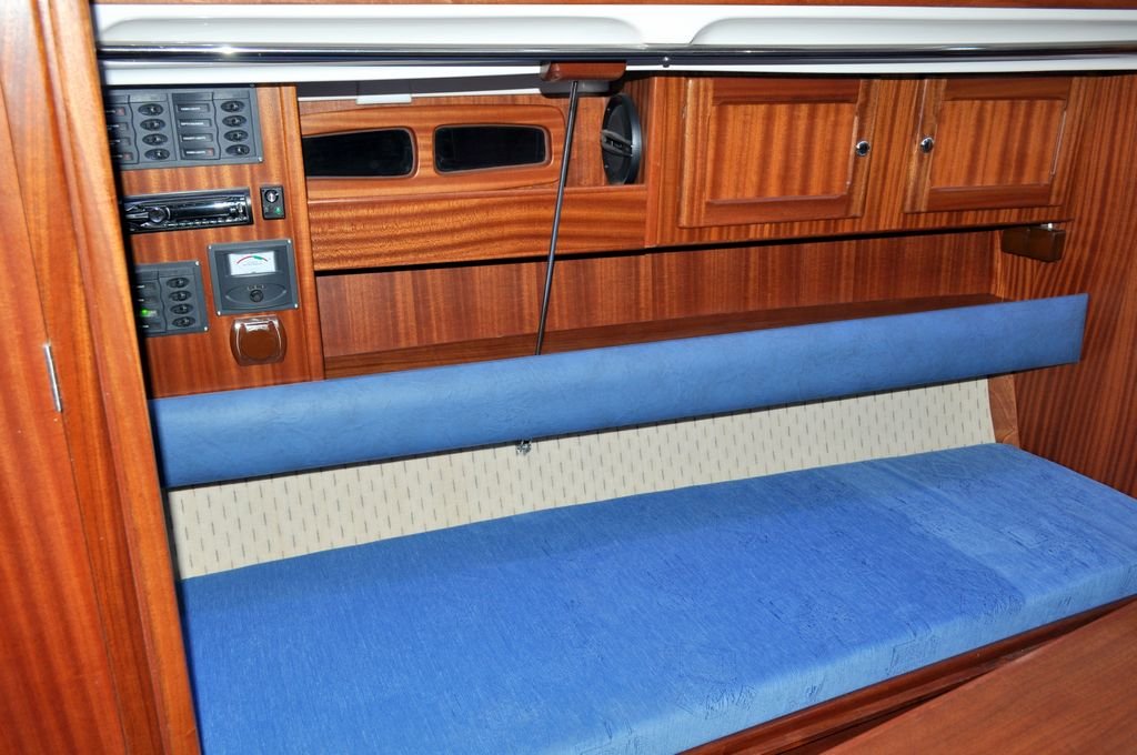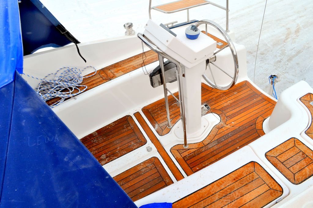 Łatwy w prowadzeniu, bezpieczny, wyposażony w telewizor z DVD (DVB-T), ster strumeniowy, koło sterowe, głębokościomierz, busolę, Lazy Jack, Rolfok i oczywiście patent do kładzenia masztu. Ciekawym i przydatnym elementem dodatkowego wyposażenia jest szprycbuda, która chroni zejściówkę przed deszczem i słońcem, oraz pozwala zachować czystośc na jachcie.