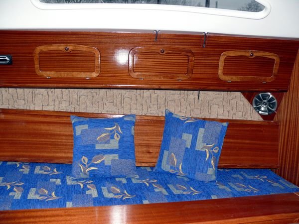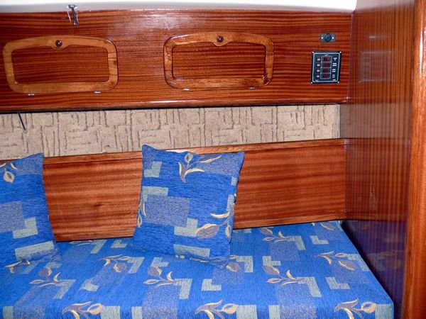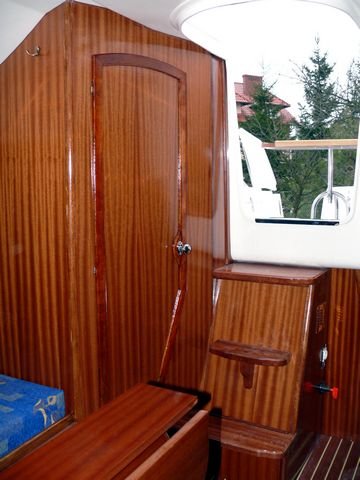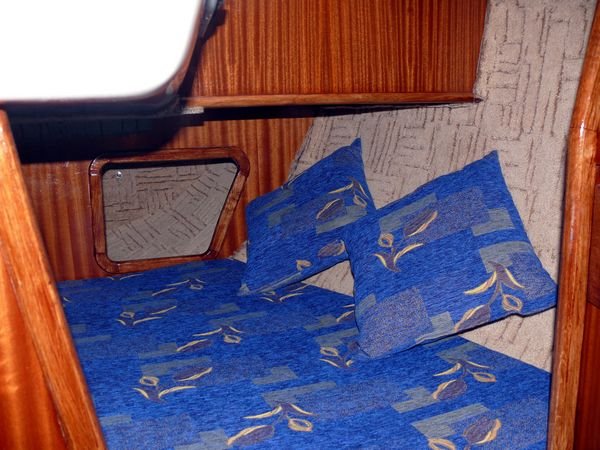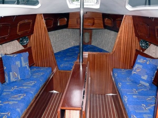 Na pokładzie jest sporo miejsca, a na rufie i dziobie drabinki ułatwiające zajście na ląd, te cechy z pewnością docenią nie tylko panie. W kambuzie znajdziemy umywalkę, dwupalnikową kuchenkę, ujęcie pitnej i zaburtowej wody zasilanej pompą ciśnieniową, radio oraz stolik w kokpicie.