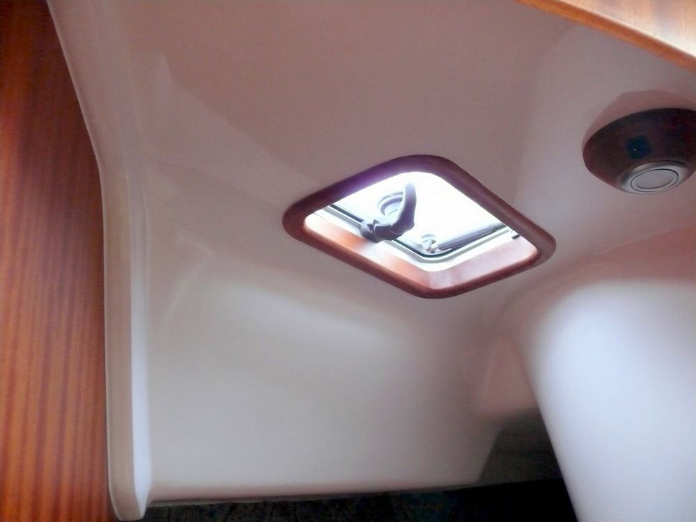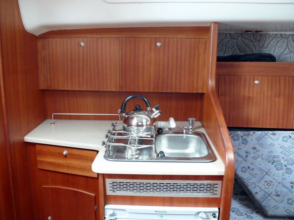 Łatwy w prowadzeniu, bezpieczny, wyposażony w telewizor z DVD (DVB-T), ster strumeniowy, Lazy Jack, Rolfok i oczywiście patent do kładzenia masztu. Kambuz wyposażony w lodówkę, umywalkę, dwupalnikową kuchenkę, ujęcie pitnej i zaburtowej wody zasilanej pompą ciśnieniową, dodatkowo radio, stolik w kokpicie, WC chemiczne, oraz bezpieczne ogrzewanie.