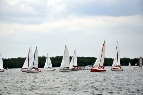 21.05.2016 odbyły się na jez.Niegocin VI Giżyckie Regaty Armatorów. W regatach wystartowaliśmy tak jak w roku poprzednim na Świetliku (Twister 800n) przygotowanym nie do regat ale do czarteru. Jak klasa turystyczna to jacht też turystyczny.Jako zwycięzcy z roku ubiegłego nie mieliśmy szans na zwycięstwo, bo nie wiemy jak, ale w T3 znalazł się Huzar 851 – jacht typowo regatowy. Pierwsze dwa biegi popłynęłyśmy nieźle zajmując pierwsze miejsce za Huzarem. W trzecim biegu spóźniliśmy się nieco ze startem, a do tego powiało mocniej czego Twistery specjalnie nie lubią. Na dolnej boi jeszcze zostaliśmy zablokowani przez Pana Sternika w marynarskiej czapce i po biegu. Trudno jeden bieg ma być odrzucony. Startujemy do decydującej rozgrywki, start dobry, ale na silnym wietrze Świetlik traci pozycje, niestety nie obronimy drugiego miejsca w regatach…? Nie poddajemy się, zamiast gonić, atakujemy na pełnym jesteśmy szybsi i na dolnej boi meldujemy się na drugim tzn. „pierwszym za...wiadomo kim”. Krótka halsówka na metę gdzie chwilę później łapiemy się w kadr kamery „Anioła”, który fetuje zwycięstwo w klasie T2, Świetlik w tym biegu był jednak szybszy… .