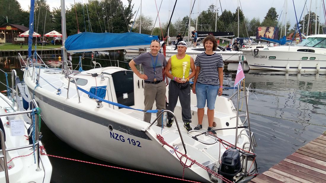 To przygotowanie to nie trym regatowy, tylko naprawa po czarterze, parę drobiazgów, ale jacht nie nadawał się do żeglugi. Pływanie po ciemku po znanej wodzie nie jest niczym szczególnym, nawet trochę uspokaja. Jeszcze sporo do zrobienia, ale szczęsliwie melduję sie w kanale Giżyckim. Czekam na nowego, ważnego członka załogi, chwila postoju i jest nas dwóch, nie ma czasu pędzimy do Węgorzewa na miejską plażę. Nie jesteśmy sami inni też zrezygnowali z płynięcia przez kanał Węgorzewski. Szykują jachty, wynoszą wszytko co waży, my zabraliśmy wszystko, nawet zapasową butlę z gazem i drugi akumulator. Niestety musimy walczyć ze sztagiem, zjawia się Sławek po odprawie i naprawę kończymy na czas. Mamy jeszcze chwilę na dwa szybkie kontrolne zwroty, w tym składzie załoga startuje pierszy raz. Na starcie znajdujemy trochę miejsca i ruszamy prawie o czasie, niestety wszyscy idą ostrzej, czołówka ucieka... Na szczęście przychodzi olśnienie – miecz! Wreszcie Świetlik reaguje na ster jak trzeba, zaczynamy odrabiać do klasy startującej wcześniej. Przed nami Bingo z hyromieczami, tego nie dogonimy. Na pierwszej halsówce przez całe Mamry odrabiamy 10 minnut do nowszego Twistera z fajnymi żaglami i bardzo dobrą załogą, który wystartował w niższej klasie. Wygląda na to, że chce się z nami pościgać – chętnie! Na Święcajty wchodzimy na drugim miesjscu ze znaczną przewagą nad jachtami z naszej klasy, drugi Twister za rufą. Wyspa prawą burtą i halsujemy na przesmyk, przy okazji bezpośredni pojedynek Twisterów rozstrzygnięty na naszą korzyść. Do końca wyścigu skupiamy się na doganianiu jachtów, które są w zasięgu. Trzech z niższej klasy przez 10 minutowę opónienie ze startu nie zdążyliśmy i do tego "HydroBingo" czyli ostatecznie meldujemy się na drugim w klasie powyżej 7,99 i piątym z całej stawki. W nagrodę musimy zostać na zakończenie ale warto było! Gratulacje dla organizatorów za rok pewnie się spotkamy. Trening przed MamertCup zakończony. Teraz czas na Żarka!